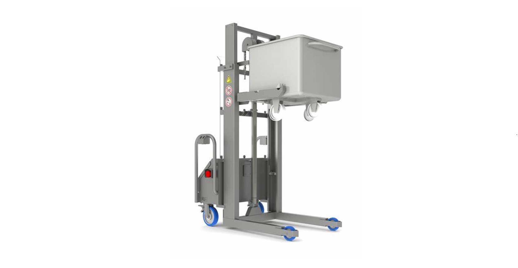 The Backstaver NT tipping machine is designed to empty meat carts, handcarts, or carts that meet the standard DIN9797 200 or 300 liters at the height of the workbench.